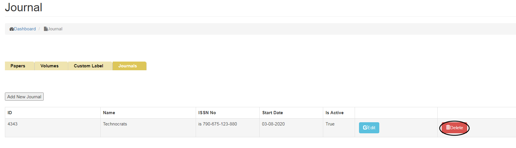 On clicking Journal, you will be able to see the options which include Papers, Volumes, Create Label and Journals.