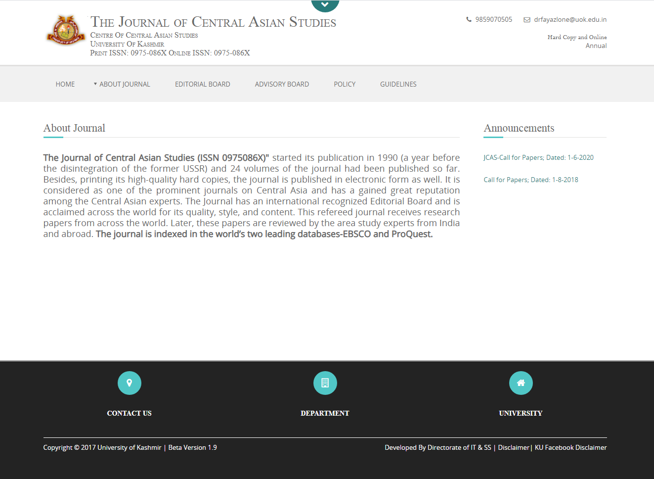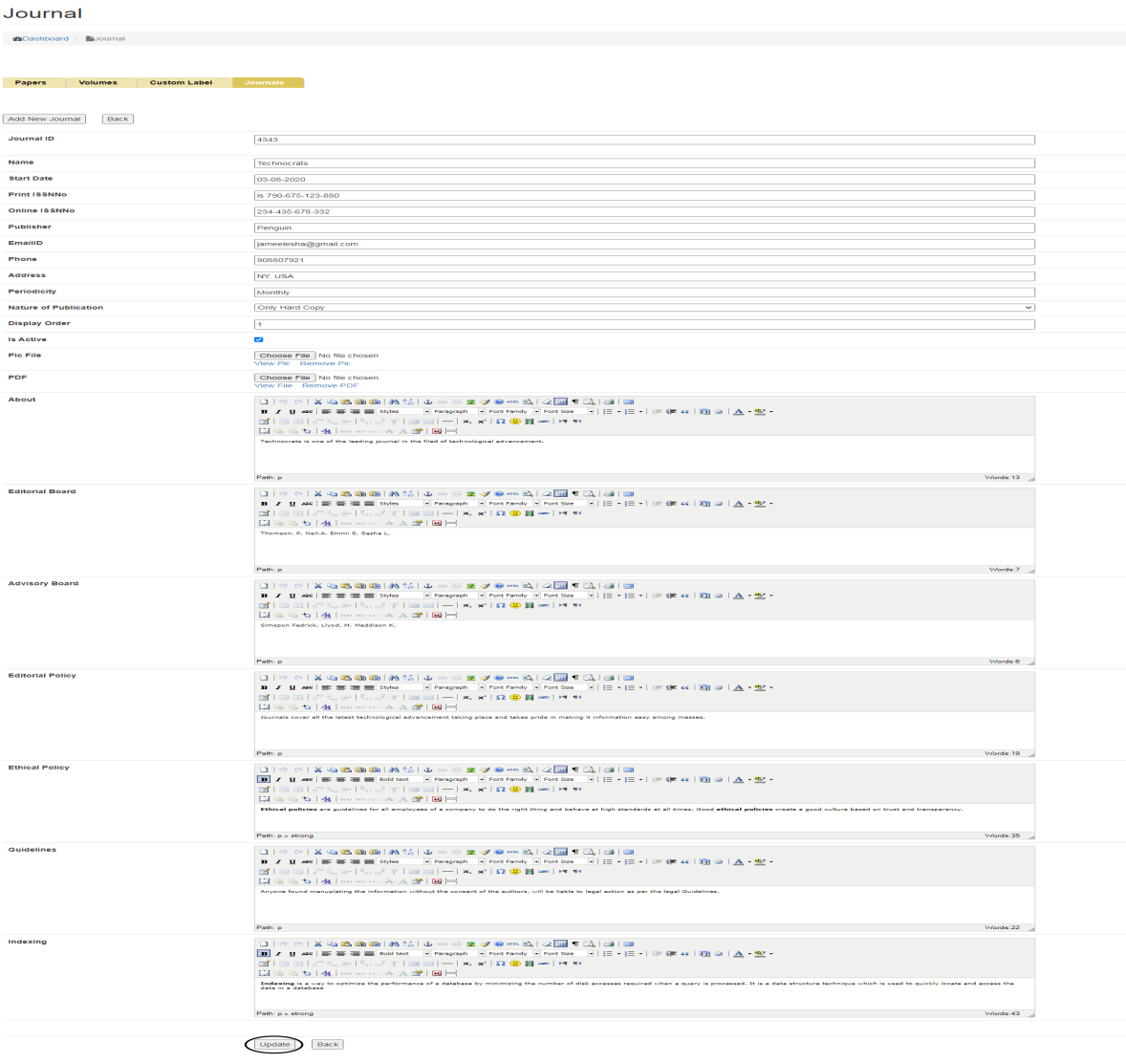 This part of the content Management System helps you to add and update information related to journals Published by the department.