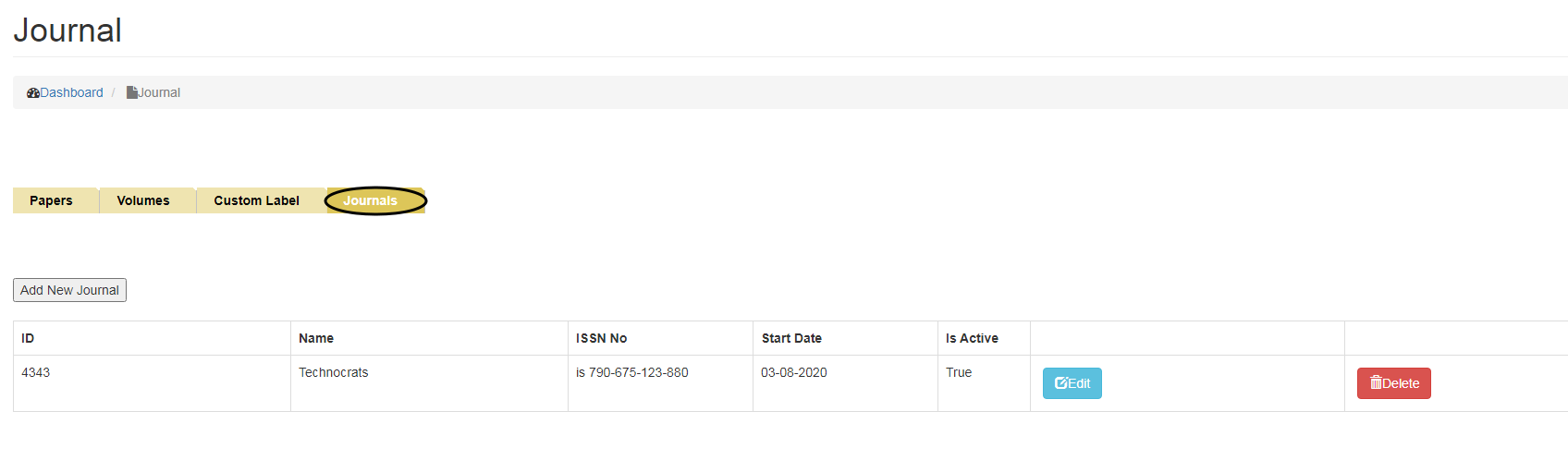 After clicking on Add new journal tab, it will take you to the page wherein you can enter all the details related to Journal which includes: